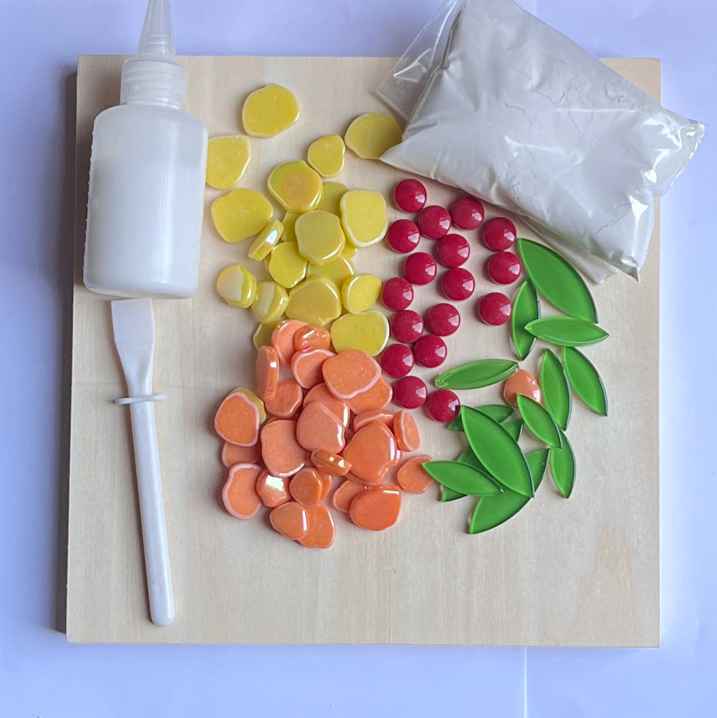 Cada kit está cuidadosamente preparado por nosotros. Incluye todo lo que necesitas para hacer dos posavasos: base de madera de 4 x 4 pulgadas con respaldo de corcho autoadhesivo, pegamento, esparcidor de pegamento, lechada, una hermosa selección de mosaicos y pétalos de cerámica e instrucciones paso a paso.